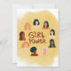 Belo cartão multicultural internacional de saudação do dia das mulheres. A design apresenta mulheres rostos com um fundo de aquarela ocre e o texto de encorajamento, potência feminina, em um marrom correspondente. A parte de trás apresenta o mesmo fundo aquoso ocre com um pequeno coração de cor castanha. Envie esta carta de um tipo no dia 8 de março e empodere mulheres.