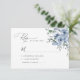 Placa Rsvp com script preto e florais de aquarela azul