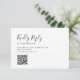 Um cartão de casamento RSVP de código QR com simples letra preta.