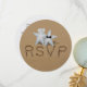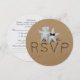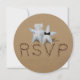 Traga um pouco de encanto costeiro para a sua papelaria de casamento com esta moderna carta circular RSVP. A design da frente apresenta uma noiva de peixe estrelado minimalista e um casal de noivos na areia acima esculpido por letras RSVP para um toque lúdico, mas elegante, à beira-mar. O verso oferece espaço para seus detalhes de resposta, fazer que seja fácil para os convidados responderem com suas preferências de atendimento e refeição. Completando perfeitamente a suíte de casamento Moderno da Starfish, esta carta redonda única adiciona um elemento novo e contemporâneo à sua celebração enquanto mantém o tema coeso e na moda.