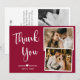 Cartões de agradecimentos De Colagem De Foto Branca De Casamento Elegante E Mínimalista Manuscrito Burgundy. modelo de cartões de agradecimentos multifoto do casamento na moda com duas (2) fotos na frente e uma (1) fotos no verso. Com o texto "Obrigado" numa bonito letra escrita à mão num guião tipográfico em branco sobre o fundo vermelho do vinho ou cor burgundy. Personalize o nome personalizado e a mensagem do obrigado. Se preferir escrever manualmente a sua nota, basta eliminar o texto de amostra para obter mais espaço. Se precisar de ajuda ou item correspondente, entre em contato com o designer!