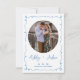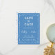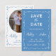 Whimsical Blue Hand Drawn Casamento Salve o Cartão de Data Simples mas doce mão branca desenhada pelo coração quadro casamento salve a data em azul e branco. Este design apresenta a foto do casal, em um quadro redondo, na parte traseira da placa. Ideal para um casal à procura de um casamento azul de moda.
