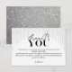 Apresentando o Cartão de Agradecimento Brilho para Chá de Noiva "Bêbada de Amor", a maneira perfeita de mostrar sua gratidão aos seus entes queridos após o seu chá de noiva! Este cartão apresenta um design sofisticado e elegante, com um fundo de brilho prateado e letras pretas elegantes.