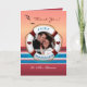 Um cartão de agradecimento personalizado e customizado para casamento de cruzeiro. Este cartão com tema de cruzeiro ao pôr do sol apresenta uma vista de um navio de cruzeiro ao pôr do sol com aves e uma moldura para você carregar sua foto de casamento, design gráfico por XG Designs NYC. Este cartão está em formato de moldura de modelo pronto para você carregar uma foto, personalizar o texto e incluir seus nomes. É uma combinação perfeita com nossos convites de casamento com tema de cruzeiro ao pôr do sol. Se você quiser editar/alterar o estilo da fonte ou as cores, basta clicar em 'personalizar' e essas opções estarão disponíveis para você também. Veja nossa loja para outros convites com tema de cruzeiro, cartões de agradecimento, save the date, selos, brindes, presentes e muito mais! Imagem de amostra da noiva e do noivo gentilmente cedida por Falln-stock. www.fall