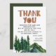 Cartão de agradecimento de aniversário infantil com árvores e montanhas rústicas em aquarela.