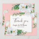 Nosso cartão de agradecimento de casamento com magnólia rósea em aquarela é uma maneira maravilhosa de celebrar e compartilhar seu evento alegre. Esta bela moldura dourada tem uma bela variedade de magnólias brancas lindas e folhagens em um fundo róseo encantador. É perfeito para a primavera ou verão. Fantástico para qualquer evento de verão ao ar livre ou interno.