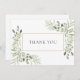 Cartão de agradecimento de casamento com folhas de eucalipto suaves, apresentando folhas delicadas em aquarela que enquadram sua mensagem de agradecimento em um texto elegante. Você pode personalizar com sua própria mensagem de agradecimento no verso. Uma maneira adorável de agradecer aos seus convidados. Projetado por Thisisnotme©