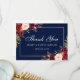 Cartão de Agradecimento de Casamento Dourado Azul Marsala Burgundy Floral Aguarela