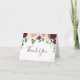 Elegante cartão de agradecimento de casamento com flores em aquarela e bordas de folhagem. A borda floral apresenta flores modernas e folhagem de jardim em tons de branco, verde, rosa beije e vermelho burgundy. Lindo "Obrigado", em cor burgundy coordenada, em letra cursiva na frente. Projetado para combinar com nossa Coleção Floral Botânica Burgundy Blush.