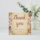 Um cartão de agradecimento de casamento atemporal e romântico projetado para combinar perfeitamente com o convite correspondente. Com um fundo estilo pergaminho vintage desbotado e flores suaves em tons empoeirados e delicados acentos de penas nas bordas, o design traz calor e elegância antiga.