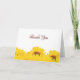 Este é um cartão de agradecimento de casamento girassol com fundo branco e escrita em letra cursiva sofisticada das palavras "Obrigado" em marrom. O interior é em branco. Estes são perfeitos para cartões de agradecimento de casamento.