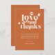 Os Cartões de Agradecimento de Casamento Laranja e Creme Moderno Retrô são uma ótima maneira de adicionar um toque de personalização ao seu grande dia. A paleta de cores laranja e creme dá a este um visual extra moderno, mas com um olhar retrô vintage. Diga obrigado com Amor e Gratidão.