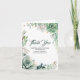 Cartões de agradecimento de casamento elegantes com folhas e flores verdes e douradas