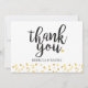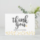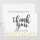 Fonte de letra trendy "Obrigado!" e personalizado com seus nomes e mensagem com um delicado fundo de confetes de corações de amor dourados. Concebido por Pure Piglet© em www.zazzle.com/purepiglet*.