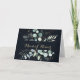 Este cartão de agradecimento de festa de casamento rústica em eucalipto dourado e azul é perfeito para um casamento simples. Este design artístico apresenta flores douradas desenhadas à mão e folhagem verde de eucalipto em aquarela em um fundo azul escuro, lindamente arranjado em uma moldura geométrica elegante.