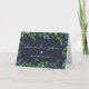 Folhagem de floresta em aquarela rústica, cartão de agradecimento de casamento azul marinho. Bonito "Obrigado", em letra cursiva moderna com acento de coração e linha de texto modelo para seus nomes. O interior do cartão fornece um espaço modelo para sua foto, personalize ainda mais para adicionar uma mensagem impressa ou deixe em branco para uma nota manuscrita.