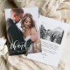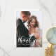 Cartão vertical elegante e caprichoso para agradecer aos seus convidados por fazerem parte do seu dia de casamento. Este cartão personalizável de agradecimento apresenta caligrafia moderna branca sobreposta e padrão de confetes.