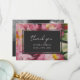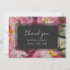 Retângulo cinza rodeado por desenho botânico floral rosa com texto bege. O lado oposto apresenta foto.