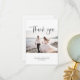 Cartões de agradecimentos de fotos de casamento. Linda caligrafia branca e preta. Foto centrada com nomes e data. O verso é vazio de uma mensagem pessoal com um pequeno coração na parte inferior. Desenhado por Kimberly Brett.