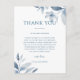 Agradecimento Dusty Blue Floral Casamento Obrigado Cartão de Lug
