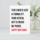 Ficando sem ideias de presente de aniversário? Este engraçado cartão de aniversário feliz com uma mensagem ou citação hilariante vai certamente interessá-lo. Este cartão pode ser um presente de aniversário perfeito se você estiver disposto a transmitir desejos de aniversário malvados e engraçados para o seu amado. Pode ser um presente perfeito para ele, para ela, para homens, para mulheres, para marido, para esposa, para namorada, para namorado, para noivo, noiva.
