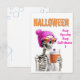 Mande uma saudação divertida e assustadora para este Dia das Bruxas com o cartão "Fique Louco, Fique Cafeinado". Apresentando um esqueleto esquelético tomando café enquanto veste um gorro rosa brilhante e óculos de sol, esta placa é perfeita para amantes de Halloween e para entusiastas de café. Quer esteja agradecendo a um amigo ou enviando uma nota festiva, este design único adiciona um toque divertido à sua correspondência de Halloween. Feito com papel de alta qualidade, é certo que deixa uma impressão duradoura. Fique assustado, fique cafeinado, e mande um pouco de alegria de Halloween com este cartão de na moda!