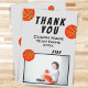 Foto de basquete, obrigado Cartão de treinador. Obrigado de basquetebol que você treinou cartão com foto, obrigado que você escreva, nome do treinador, nome da equipe, ano, nome do jogador e bolas de basquete. Personalize o cartão com nomes e texto.
