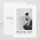 Um cartões de agradecimentos de fotos de casamento simples e limpo, com seu retrato de casamento vertical favorito com uma espessa borda branca. "Obrigado" está na cinza escura, fonte corajosa e ousada. Personalize com seus nomes embaixo. Você pode digitar um obrigado no verso ou deixar o vazio para escrever uma nota manuscrita.