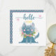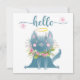 Um adorável gato de cinza azul com um colarinho floral. A parte traseira do cartão tem bolinhas correspondentes e um bloco para sua mensagem pessoal.