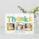 Este cartão de agradecimento caprichoso apresenta letras divertidas e pontos coloridos. Adicione suas fotos e saudações favoritas para um agradecimento único.