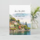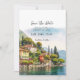 Um belo design cênico de aquarela do lago Como, na Itália Norte, salva o cartão de data, com uma coordenada face inversa. Fácil de editar ou excluir os campos de texto disponíveis para personalizar as informações com seus próprios detalhes. Convocação e muitos outros itens nesta coleção temática italiana. Visite meu compro para ver o intervalo de cheios ou entre em contato comigo se você precisar de algo com este design não listado no momento.
