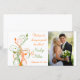 Agradecimento Laranja, Verde, Cartão com fotos de Casamento Flor