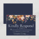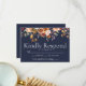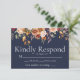 O cartão RSVP de casamento azul floral de marinho floral de outono moderno para os seus convites de casamento, usado como cartão de cerimônia.