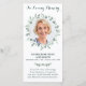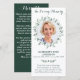 Simpatia moderna de Eucalyptus Cartões de oração funerários 4x8 favoritos. Este simples, mas elegante cartão de oração memorial apresenta um moderno design de eucalipto verde. Frente "In Loving Memory" Personalize este cartão de oração do funeral memorial com a foto, o nome e as datas de seus entes queridos e o sentimento. Poema 'Miss Me', que pode ser personalizado, por favor, contacte se quiser uma design com um poema específico que não. Este cartão de oração memorável será um guardião precioso, para os serviços funerários e para a celebração da vida. COPYRIGHT © 2020 Judy Burrows, Black Dog Art - Todos Os Direitos Reservados. Elegante Eucalyptus Memorial Foto Funeral Prayer C