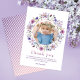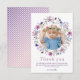 Envie agradecimentos sinceros com este cartão de agradecimento de flor silvestre em aquarela, perfeito para o aniversário de uma menina ou festa de jardim. Com suaves flores roxas e uma coroa de borboletas em torno da foto de seu filho, este cartão adiciona um toque doce e pessoal. Personalize a mensagem e o nome para um acabamento digno de recordação. Coordena com a coleção completa Purple Wildflower Butterfly.