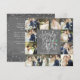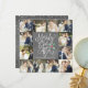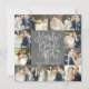 Divulgue o amor e exiba suas fotos de casamento nesta época de festas com este cartão de felicitações chic e moderno de colagem de fotos de casamento "Just Married Holiday". Perfeito para os recém-casados usarem como um anúncio de casamento ou cartão de agradecimento durante as festas de fim de ano. Este cartão faz bom uso das suas belas fotos de casamento, apresentando uma grade de colagem de 12 fotos única e contínua, combinada com uma escrita branca festiva em fundo de quadro-negro que diz "Merrily Ever After" e nosso azevinho pintado à mão em aquarela. No verso, adicione sua própria mensagem personalizada, que é destacada por uma moldura divertida de neve/flocos de neve.