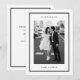 Um preto e branco moderno salva a data com um quadro preto limpo, tipografia minimalista e um layout fotográfico. Elegante e design eterno, perfeito para casais que adoram artigos de casamento simples e modernos.
