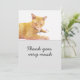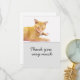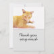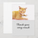 Agradecimento O gato laranja está no cartão de fundo branco