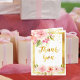 Um cartões de agradecimentos elegante depois de um aniversário. Com flores de dália, dahlia cor d'água, cor de pêssego e coral, cor de rosa contemporâneo, confete de ouro e um falso quadro de ouro como decoração. Fundo branco chic. Dentro: Modelo para sua nota de agradecimento e nome/nomes. Modelo para sua foto. Dahlia Flowers. Traseira: Modelo para sua foto de segundo.