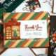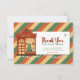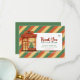 Retro Vintage "Obrigado pelo seu pedido" modelo de Cartões de agradecimentos de de natal para uma inserção de pedido para uma pequena empresa de comércio eletrônico. Adicione seu logotipo, informações de contato e detalhes de desconto opcionais. Este design apresenta um pequeno compro, luzes de cordas de natal e um fundo verde, vermelho e amarelo listrado.