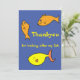 Com um peixe de desenho animado bonitinho na frente e atrás, este cartão é uma maneira divertida de dizer obrigado por cuidar do seu peixe. Copyright Mindgoop