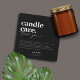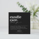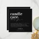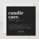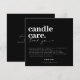 Design moderno e minimalista em letras pretas e brancas para os cartões de cuidados com velas da sua empresa. Personalize este design para você!