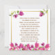 Belo cartão de compaixão magenta bougainvillea quadrado com um ditado positivo e inspirador sobre mães de fundo branco e ouro.