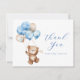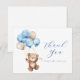 Podemos esperar! cartões de agradecimentos de Chá de fraldas temático Urso-ursinho com um ursinho de cor d'água voando alto com balões azuis e castanhos. Personalize com suas informações para a mamãe a ser. Clique em "clicar para personalizar mais" para alterar o estilo, o tamanho ou a cor da fonte.