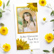 Diga gracias depois de sua doce celebração dos 15 com a elegante e personalizada Quinceañera de Girassol Amarelo Obrigado Cartão com fotos. Personalize-o com uma fotografia da aniversariante de quinze anos e o nome pessoal. Este obrigado de quinceanera florescente e elegante que você cartões de fotos apresenta girassóis amarelos enfeitando os cantos com um fundo branco.