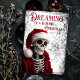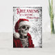 Sonhando com um Cartão de Natal Gótico. © Dark Heart Desires. Este Cartão de Natal Gótico tem um esqueleto vestindo um chapéu e jaqueta de Papai Noel e as palavras Sonhando com um Natal Gótico nele. Este cartão é em branco por dentro para que você possa adicionar sua própria mensagem.