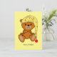 Este Cartão de Aniversário bonito apresenta um ursinho de pelúcia bonito com boné para dormir desenhado à mão e editado digitalmente. O urso é marrom, o boné-cama é amarelo com estrelas pequenas. Um Cartão de Aniversário super fofo para qualquer um! Custom Text.