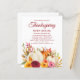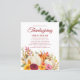 Janta de Ação de Graças, convite público para o documento orçamental. Flores de outono alegres e folhas de outono com abóboras de aquarelas boho e texto de guião em cores festivas. Clique em Personalizar para alterar o texto, as cores ou o plano de fundo.
