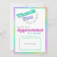 Se você quer mostrar sua apreciação aos seus professores/funcionarios de uma forma tão brilhante e alegre quanto eles são, nosso Titular de Cartão de Presente de Obrigado com um brilhante fundo arco-íris é o caminho a seguir! Seja o Dia de Apreciação do Professor ou você só quer dizer obrigados, este cartão é perfeito.