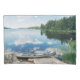 Esta incrível foto do Getty Images apresenta uma canoa em uma costa em um lago em Suecia.